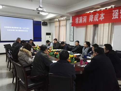 根据学校“三严三实”专题教育办公室的工作部署,集团总支于11月4日印发了《后勤服务集团关于深入开展“三严三实”专题教育的通知》(以下简称通知),根据通知安排,11月上旬完成了典型案例通报和小官巨贪警示教育,11月中旬通过召开会议、个别谈话和发放征求意见表的方式,广泛征求员工对集团管理人员意见建议,11月下旬集团管理人员从遵章守法、担当意识、危机意识、大局意识、形式主义、工作作风等六个方面完成自剖自查。12月16日集团管理人员以学习心得体会或表格形式提交了自剖自查成果。经过一个半月的精心准备, 12月18日上午后勤服务集团召开管理干部“三严三实”自剖自查汇报会暨组织生活会,会议由赵国华副校长主持。会议主题为:坚持问题导向,用好批评和自我批评的武器,列出自身存在问题的问题清单,拿出整改措施,提高集团管理人员解决自身存在问题的能力。